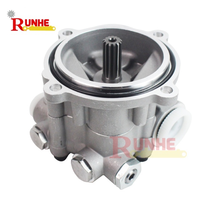The pilot pump K3V112 is a gear-type pilot pump that complements the K3V series swash-plate axial piston variable main pump. It is typically installed at the rear end of the main pump in a tandem configuration, with a 13-tooth input spline.The pump features a compact structure, low noise, and high resistance to pressure shocks. Its primary function is to provide a stable pilot control oil source for the hydraulic system, supporting the main pump's variable displacement regulation, power regulation, pilot operation of control valves, and system oil replenishment.This ensures precise flow and pressure response, smooth and reliable operation under complex working conditions in excavators, while improving overall efficiency and service life.